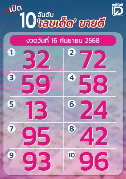 มาแล้ว 10 เลขเด็ด งวดวันที่ 16 ก.ย. 68 เลข 32 มาแรง นายกฯ คนใหม่ ขายชุด 5 ใบ 1,000 บาท ใบละ 150 บาท