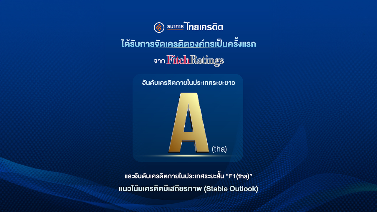 ธนาคารไทยเครดิต จำกัด (มหาชน) หรือ CREDIT ได้รับการจัดอันดับเครดิตภายในประเทศระยะยาว (National Long-Term Ratings) ที่ระดับ ‘A(tha)’ และอันดับเครดิตภายในประเทศระยะสั้น (National Short-Term Rating) ที่ระดับ ‘F1(tha)’ โดยมีแนวโน้มอันดับเครดิต ‘มีเสถียรภาพ’ จากฟิทช์ เรทติ้งส์ (ประเทศไทย) ตอกย้ำศักยภาพการบริหารธุรกิจที่แข็งแกร่ง ดำเนินกิจการบริหารความเสี่ยงอย่างระมัดระวัง สะท้อนผลการดำเนินการที่ปรับตัวเติบโตอย่างต่อเนื่อง