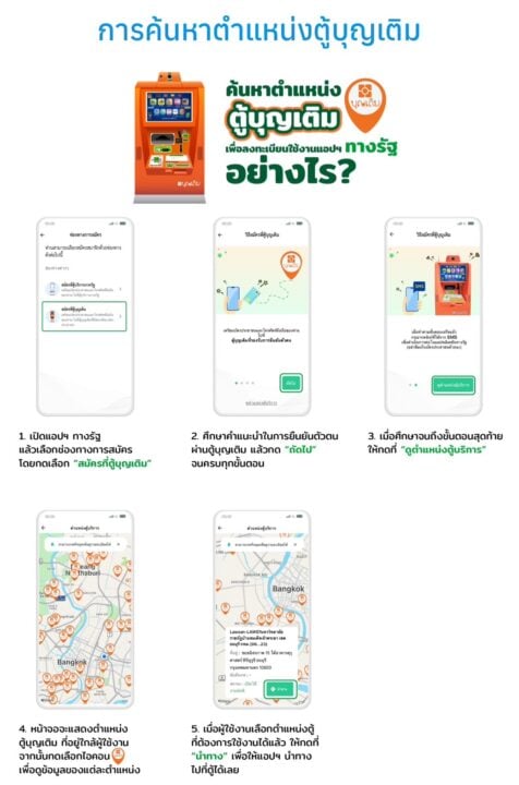 วิธีการค้นหาตำแหน่งตู้บุญเติม เพื่อลงทะเบียนใช้งานแอปทางรัฐทำอย่างไร?
