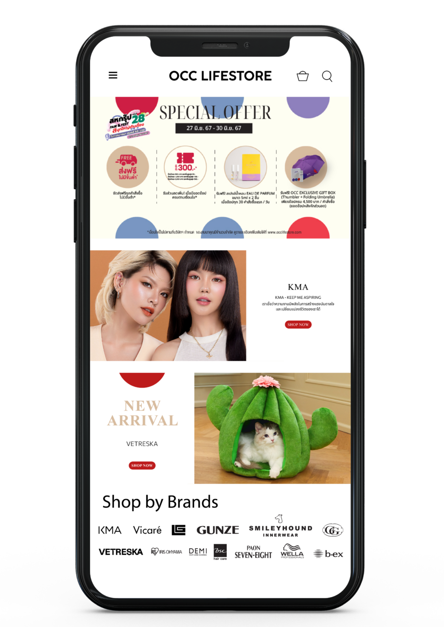 เว็บไซต์ OCCLIFESTORE.COM มีผลิตภัณฑ์คุณภาพสูงหลากหลายกลุ่มด้วยกัน ได้แก่ ผลิตภัณฑ์ความงาม ผลิตภัณฑ์แฟชั่น ผลิตภัณฑ์แฮร์แคร์ ผลิตภัณฑ์เวลเนส และผลิตภัณฑ์สำหรับสัตว์เลี้ยง โดยครอบคลุมแบรนด์ดังทั้งในประเทศและต่างประเทศ อาทิ KMA COSMETICS,GUY LAROCHE LINGERIE & SWIMWEAR,SMILEYHOUND INNERWEAR,BSC HAIR CARE,NIOXIN,WELLA PROFESSIONALS,IRIS OHYAMA,VETRESKA เป็นต้น เพื่อให้ผู้บริโภคมีตัวเลือกในการช้อปที่ตอบสนองไลฟ์สไตล์ประจำวันของตนเอง