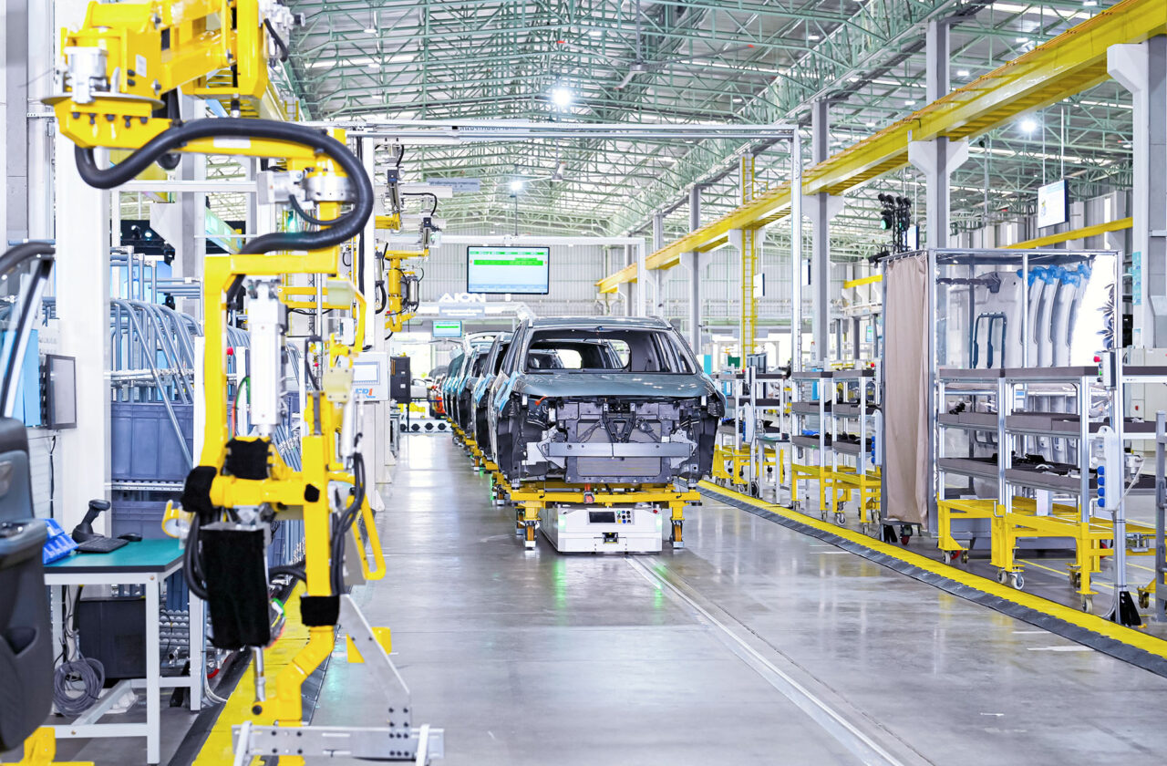 โดยมีข้อได้เปรียบด้านการผลิตอัจฉริยะชั้นนำของโลกสี่ประการ ได้แก่ ความอัจฉริยะทางเทคโนโลยีขั้นสูง คุณภาพสูง ประสิทธิภาพสูง และเป็นมิตรต่อสิ่งแวดล้อม มีการนำระบบการเชื่อมต่อข้อมูลแบบ 100% ในการผลิตแบบครบวงจร โดยมีการใช้หุ่นยนต์ร่วมกับเทคโนโลยี AI ในการผลิต เพื่อให้แน่ใจว่ารถยนต์ไฟฟ้าของ GAC AION ที่ถูกผลิตจากโรงงานแห่งนี้ จะมีคุณภาพสูงและไม่มีข้อบกพร่อง