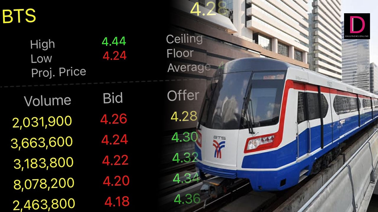 หุ้น BTS ยังไม่ขยับแม้ชนะคดี กทม. ค่าจ้างเดินรถสายสีเขียว ปิดตลาดภาคเช้าราคาอยู่ที่ 4.28 บาท
