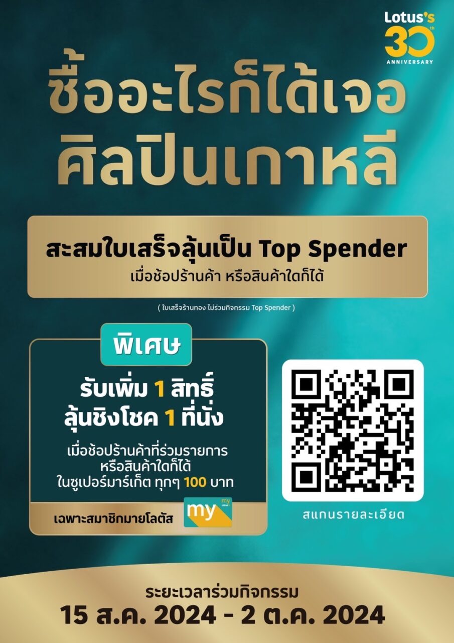 เพื่อแทนคำขอบคุณจากใจ โลตัสจัดแคมเปญ “ซื้ออะไรก็ได้เจอกงยู” ที่ดึงศิลปินเกาหลีอย่าง “กงยู” มาร่วมกิจกรรม Lotus’s 30th Anniversary with Gong Yoo in Bangkok แบบพิเศษสุดที่ประเทศไทย สำหรับลูกค้าที่เป็น Top Spender 2,000 ท่านแรก ทั้งที่ซื้อสินค้าในโลตัสทั่วประเทศ รวมทั้งที่ช้อปร้านค้าในศูนย์การค้าโลตัส (ร้านทองไม่เข้าร่วมกิจกรรม Top Spender) พร้อมลุ้น Lucky Draw อีก 1,300 รางวัล โดยทุกการช้อป 100 บาทในโลตัสทั่วประเทศ และร้านค้าในศูนย์การค้าโลตัสรับไปเลย 1 สิทธิ์ทันที เพื่อลุ้นเป็นผู้โชคดี โดยลูกค้าสามารถร่วมสนุกกับแคมเปญนี้ได้ตั้งแต่ 15 สิงหาคมถึง 2 ตุลาคมนี้ (เฉพาะสมาชิกมายโลตัส) แล้วเตรียมไปพบโมเมนต์ดี ๆ ของแฟนคลับชาวไทยกับกงยูได้ในวันที่ 26 ตุลาคมนี้ ที่ อิมแพ็ค เอ็กซิบิชั่น ฮอลล์ 5-6 โดยผู้ที่สนใจสามารถดูเงื่อนไขกิจกรรมเพิ่มเติมที่ https://l.lotuss.com/DwfaL