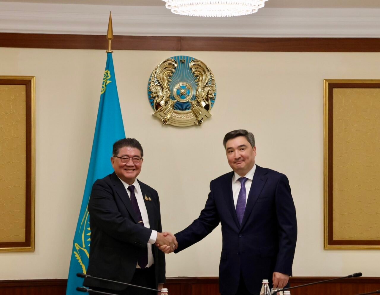 นายภูมิธรรม เวชยชัย รักษาการนายกรัฐมนตรี เปิดเผยภายหลังการหารือกับนายออลจัส เบคเตนอฟ (Mr. Olzhas Bektenov) นายกรัฐมนตรีแห่งสาธารณรัฐคาซัคสถาน ที่ทำเนียบรัฐบาลว่า ตนได้แจ้งกับนายกรัฐมนตรีคาซัคสถานว่า ไทยเล็งเห็นถึงความสำคัญของสาธารณรัฐคาซัคสถาน ในฐานะประเทศคู่ค้าที่มีศักยภาพและเป็น Gateway ในการผลักดันสินค้าไทยไปยังประเทศอื่น ๆ ในภูมิภาคเอเชียกลาง และประเทศในกลุ่มสมาชิกเศรษฐกิจยูเรเซีย (EAEU) จึงได้นำคณะผู้บริหารระดับสูงกระทรวงพาณิชย์ เดินทางเยือน นอกจากเพื่อการลงนามในความตกลงว่าด้วยความร่วมมือทางการค้าและเศรษฐกิจระหว่างไทย-คาซัคสถานแล้ว ยังมีวัตถุประสงค์เพื่อสำรวจตลาดและโอกาสของสินค้าไทย รวมถึงประชาสัมพันธ์และสร้างภาพลักษณ์ของสินค้าและธุรกิจบริการไทยในตลาดคาซัคสถาน ตลอดจนเพื่อรับทราบข้อมูลเกี่ยวกับช่องทางที่เหมาะสมในการขนส่งและกระจายสินค้าไทยไปยังตลาดคาซัคสถานและภูมิภาคเอเชียกลาง ซึ่งเป็นพื้นที่ที่มีความท้าทายและข้อจำกัดในการขนส่งสินค้า เนื่องจากเป็นประเทศที่ไม่มีทางออกทะเล อีกทั้งการเดินทางมาเยือนครั้งนี้ นับเป็นการเยือนอย่างเป็นทางการระดับรัฐมนตรีเศรษฐกิจของไทยกับคาซัคสถานในรอบ 17 ปี