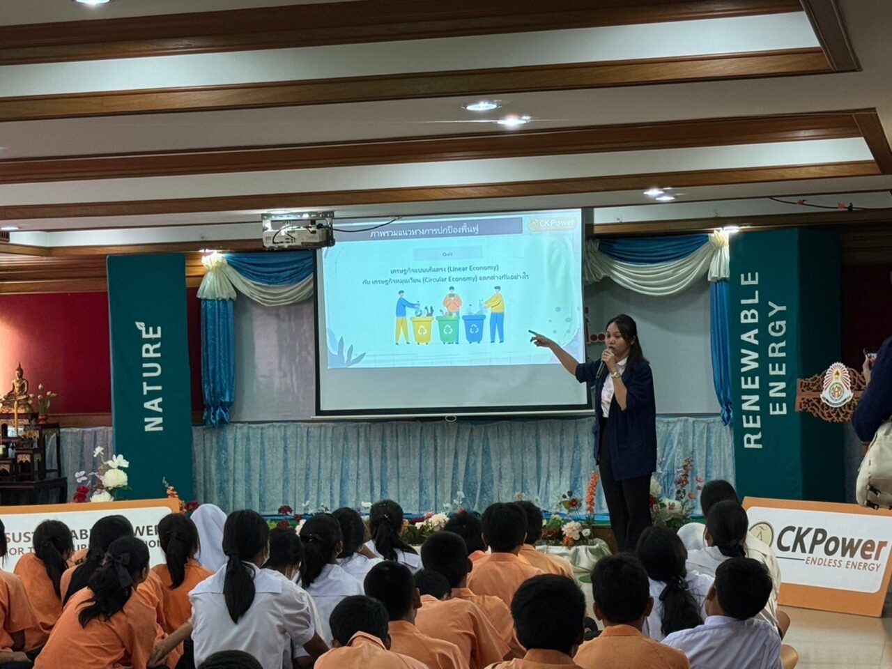 “โครงการพลังคิด(ส์) เพื่อโลกที่ยั่งยืน มีอาสาสมัครที่เป็นผู้เชี่ยวชาญด้านวิศวกรรมการผลิตไฟฟ้าและพนักงานจากหลายแผนกของบริษัทในเครือ ซีเค พาวเวอร์ ร่วมกับครูผู้นำการเปลี่ยนแปลง ทีช ฟอร์ ไทยแลนด์ ไปถ่ายทอดความรู้เกี่ยวกับเรื่องพลังงานหมุนเวียน และการอนุรักษ์ ปกป้อง ฟื้นฟูทรัพยากรธรรมชาติและสิ่งแวดล้อม ให้กับกลุ่มยุวพลังงานหมุนเวียนจำนวน 236 คน ในระดับประถมและมัธยมของทั้งสองโรงเรียน เพื่อให้เยาวชนมีองค์ความรู้และสามารถถ่ายทอดจากรุ่นสู่รุ่นในโรงเรียนแ ละสู่ชุมชนโดยรอบ เป็นไปตามกรอบการดำเนินงานสร้างคุณค่าสู่สังคม2565 – 2569 หรือ CSR Strategy Framework 2022 – 2026เพื่อแสดงถึงความมุ่งมั่นในการขับเคลื่อนเรื่องความยั่งยืนในมิติสังคม และสิ่งแวดล้อม”