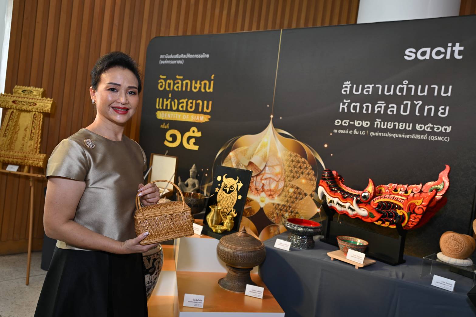 นางพรรณวิลาส แพพ่วง รักษาการแทนผู้อำนวยการสถาบันส่งเสริมศิลปหัตถกรรมไทย (สศท.) เปิดเผยว่า สศท.ได้เตรียมจัดงาน “อัตลักษณ์แห่งสยาม ครั้งที่ 15” มหกรรมจัดแสดงผลงานหัตถศิลป์ชั้นบรมครู และจำหน่ายงานหัตถศิลป์ไทย เพื่อส่งเสริม สนับสนุน ศิลปหัตถกรรมไทยทุกพื้นที่ของประเทศไทย ตั้งแต่ต้นน้ำ กลางน้ำ ปลายน้ำ ด้วยการนำทุนทางวัฒนธรรมมาเสริมสร้างอาชีพให้กับคนไทยมาอย่างต่อเนื่อง และนำมาสู่การพัฒนาหัตถศิลป์ไทยให้ยั่งยืน