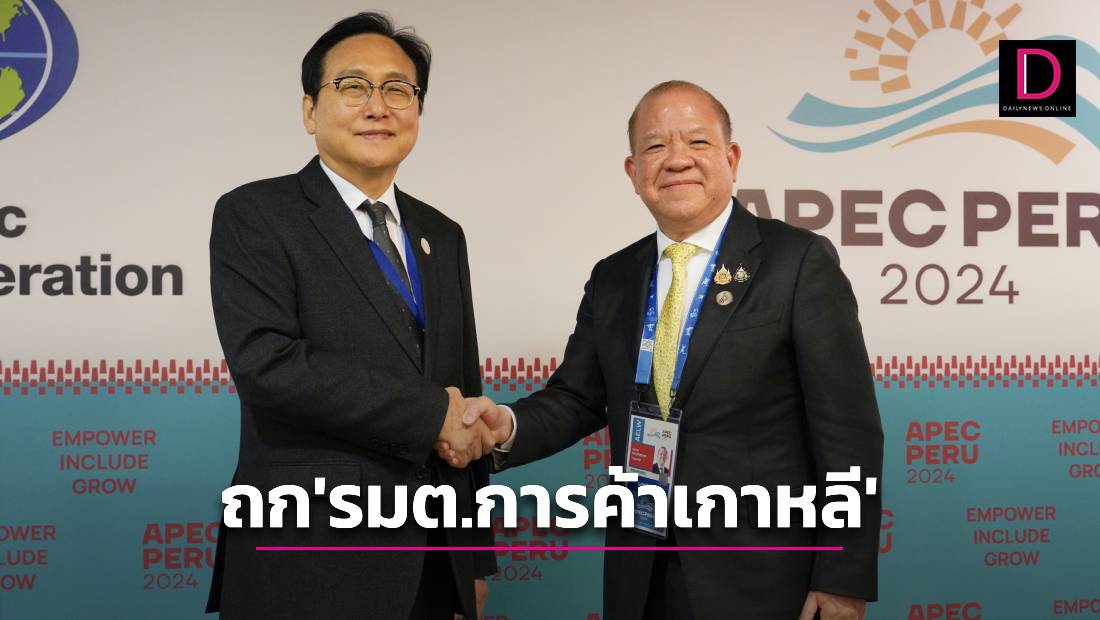 "พิชัย" ถก "รมต.การค้าเกาหลีใต้" ที่เปรู ขอให้เกาหลีใต้พิจารณาเปิดตลาดสินค้าเกษตรคุณภาพมาตรฐานสูงของไทย มั่นใจตัวเลขลงทุนอุตสาหกรรมไฮเทค EV-PCB เพิ่มสูงขึ้น พร้อมเร่งสรุปผลเจรจาความตกลงหุ้นส่วนทางเศรษฐกิจไทย-เกาหลีใต้ ภายในปีหน้า