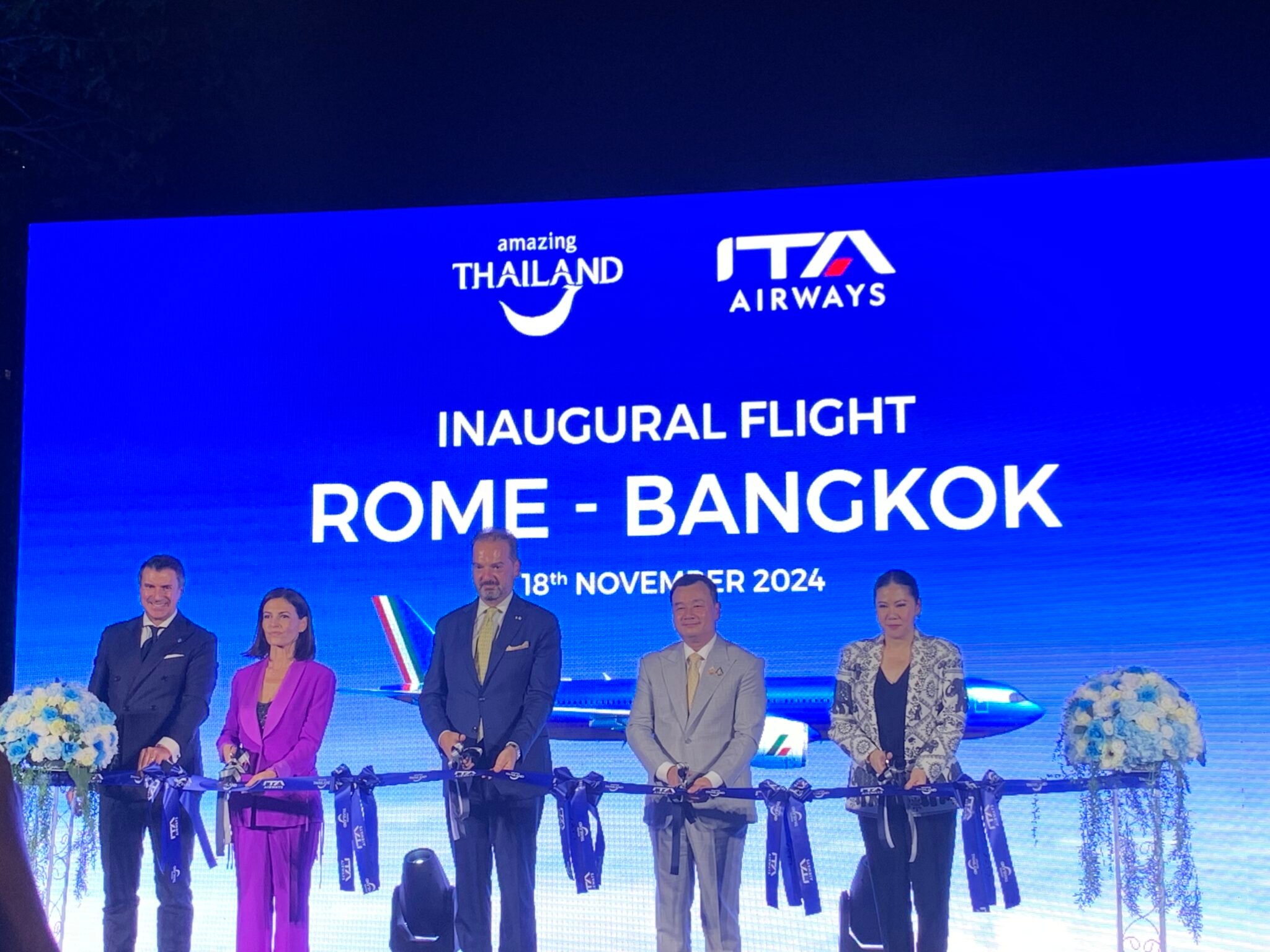นางเอมิเลียนาลิโมซานี(Emiliana Limosani)ประธานเจ้าหน้าที่ฝ่ายพาณิชย์ของITA AirwaysและซีอีโอของVolareเปิดเผยว่าสายการบินITA Airwaysหรืออิตาแอร์เวย์เปิดตัวเที่ยวบินตรงครั้งแรกสู่ประเทศไทยเชื่อมต่อระหว่างกรุงเทพฯและกรุงโรม(สนามบินโรมฟิอูมิซิโน)นับเป็นครั้งแรกที่บินตรงมายังประเทศไทยโดยจะให้บริการด้วยเครื่องบินแอร์บัสเอ330นีโอหรือAirbus A330neoให้บริการ5เที่ยวบินต่อสัปดาห์