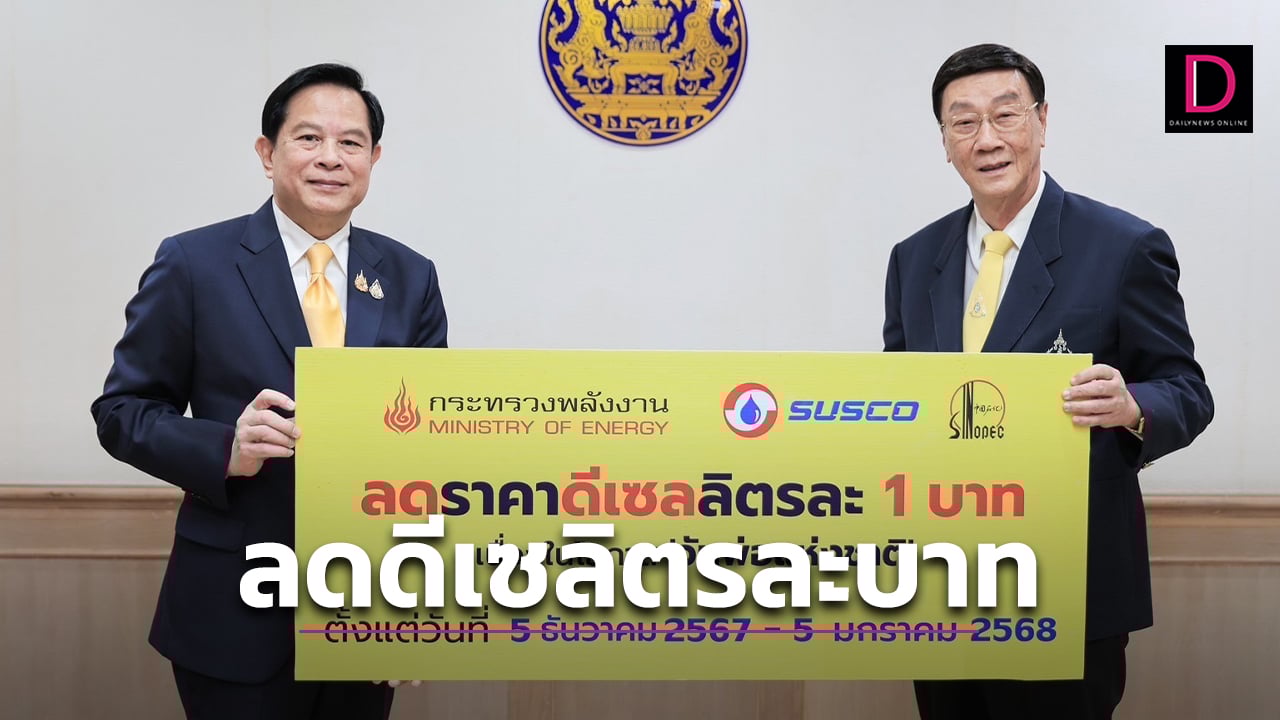 "พีระพันธุ์" แจ้งข่าวดี ก.พลังงาน จับมือ "ซัสโก้" ลดราคาน้ำมันดีเซลลิตรละ 1 บาท 1 เดือน เริ่มพรุ่งนี้ 5 ธ.ค. 67-5 ม.ค. 68 ฉลองวันพ่อแห่งชาติ ลดค่าใช้จ่ายประชาชน