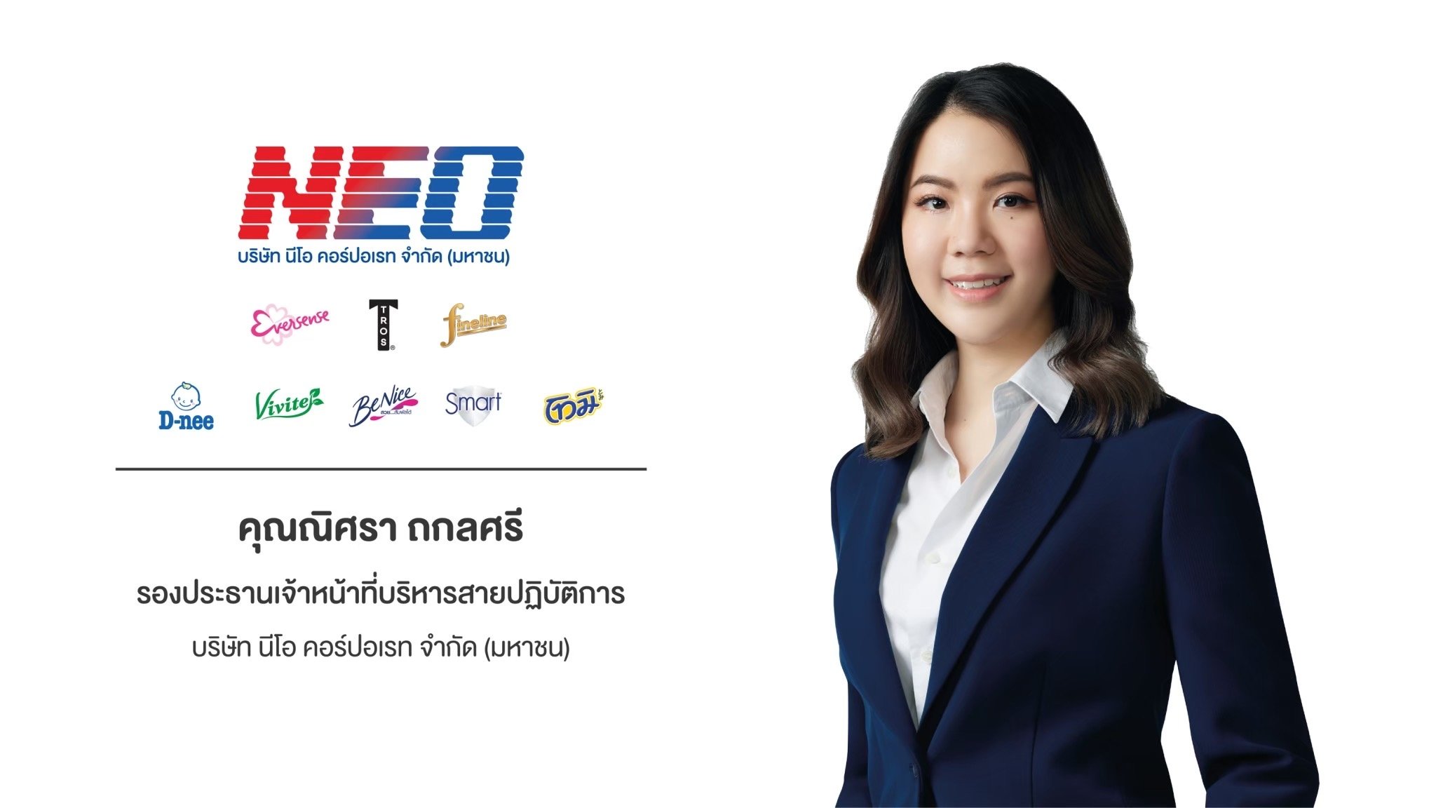 นางปัทมา ถกลศรี รองประธานเจ้าหน้าที่บริหารสายการพาณิชย์ บมจ. นีโอ คอร์ปอเรท กล่าวว่า แผนงานไตรมาส 4 นี้ จึงมุ่งบริหารงานที่ยืดหยุ่น ปรับตัวให้สอดคล้องกับสถานการณ์ของตลาดที่เปลี่ยนไปในทุกมิติ เพื่อรับกับสถานการณ์อุตสาหกรรมสินค้าอุปโภคบริโภคที่เผชิญกับความท้าทายหลายด้าน และรุกขยายสินค้ากลุ่มพรีเมียมแมส และกลุ่มพรีเมียม ซึ่งเป็นสินค้าที่สร้างมูลค่าและประสบการณ์ใหม่ให้กับผู้บริโภคอย่างต่อเนื่องด้วยการเปิดตัวผลิตภัณฑ์ใหม่ อาทิ เอเวอร์เซ้นส์ x ดีนี่ ออร์แกนิคอโล บอดี้ มิสท์ โคโลญ จับกลุ่มคนรุ่นใหม่