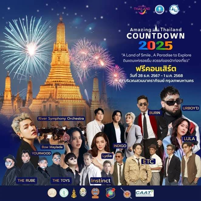 น.ส.ฐาปนีย์ เกียรติไพบูลย์ ผู้ว่าการ ททท. กล่าวว่า ททท. พร้อมส่งมอบความสุขและความประทับใจให้กับนักท่องเที่ยวทั้ง ชาวไทยและชาวต่างชาติ ด้วยการจัดงาน Amazing Thailand Countdown 2025 ในวันที่ 28 ธ.ค. 67 – 1 ม.ค. 68 ที่ บริเวณสวน นาคราภิรมย์ กรุงเทพฯ โดยมีพระปรางค์วัดอรุณราชวรารามราชวรมหาวิหาร สถาปัตยกรรมอันทรงคุณค่าของประเทศไทย เป็น Landmark และตอกย้˚าภาพลักษณ์ความสวยงามยามค่˚าคืน บริเวณริมแม่น้ำเจ้าพระยา กรุงเทพมหานคร ด้วยไฮไลต์ร่วม เฉลิมฉลองนับถอยหลังก้าวเข้าสู่ ปีใหม่ไปพร้อมกับการแสดงพลุที่สวยงามอลังการตระการตา การแสดงโดรนแปรอักษร พร้อมสื่อผสมสุดยิ่งใหญ่อลังการอย่างต่อเนื่องกว่า 7 นาที