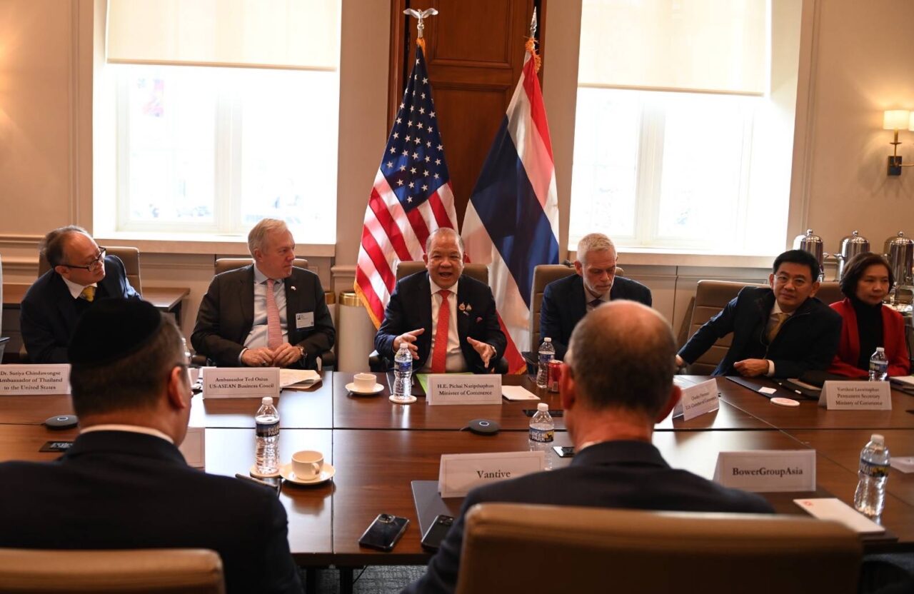 เมื่อวันที่ 8 กุมภาพันธ์ 2568 นายพิชัย นริพทะพันธุ์ รัฐมนตรีว่าการกระทรวงพาณิชย์ เปิดเผยภายหลังหารือกับภาคเอกชนชั้นนำของสหรัฐอเมริกา ประกอบด้วยคณะนักธุรกิจจากสภาหอการค้าสหรัฐฯ (US Chamber of Commerce – USCC) และสภาธุรกิจสหรัฐ-อาเซียน (US-ASEAN Business Council – USABC) ณ สำนักงาน U.S. Chamber of Commerce กรุงวอชิงตัน ดีซี วันที่ 7 กุมภาพันธ์ 2568 ตามเวลาท้องถิ่น เพื่อกระชับความสัมพันธ์ทางเศรษฐกิจกับรัฐบาลและภาคเอกชนสหรัฐฯ ตามนโยบายของนายกรัฐมนตรี นางสาวแพทองธาร ชินวัตร ที่มุ่งขยายการค้าและการลงทุนของไทย ซึ่งไทยในฐานะพันธมิตรสำคัญของสหรัฐฯ ในภูมิภาคอินโดแปซิฟิก มีจุดแข็งที่เอื้อต่อการลงทุน อาทิ โครงสร้างพื้นฐานด้านพลังงานที่เหมาะสมกับอุตสาหกรรม Data Center และ AI ซึ่งปัจจุบันมีบริษัทยักษ์ใหญ่ของสหรัฐ เช่น Google,Microsoft และ Amazon เข้ามาลงทุนในไทยแล้ว