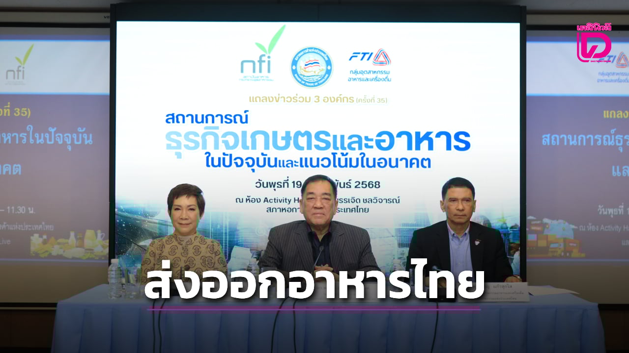 สภาหอการค้าแห่งประเทศไทย สภาอุตสาหกรรมแห่งประเทศไทย (ส.อ.ท.) และสถาบันอาหาร เปิดเผยว่า การส่งออกอาหารไทยปี 2567 ทำรายได้เข้าประเทศสูงถึง 1,638,455 ล้านบาท เติบโต 7.3% ลุ้นปี 68 ขยายตัวต่อเนื่อง ท่ามกลางความเสี่ยงจากการเปิดศึกภาษีรอบใหม่ระหว่างชาติมหาอำนาจ ตั้งเป้าส่งออกทั้งปี 1.75 ล้านล้านบาท โต 6.8%