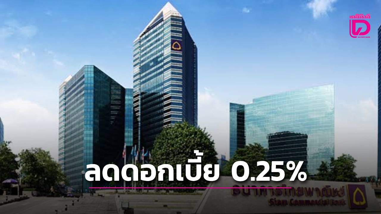 ธนาคารไทยพาณิชย์ ประกาศปรับลดอัตราดอกเบี้ยเงินกู้สูงสุด 0.25% ต่อปี เพื่อให้สอดคล้องกับทิศทางการปรับลดอัตราดอกเบี้ยนโยบายของคณะกรรมการนโยบายการเงิน (กนง.) ที่มีมติให้ปรับลดอัตราดอกเบี้ยนโยบายลง 0.25% จาก 2.25% มาอยู่ที่ 2.00% ต่อปี เพื่อให้ภาวะการเงินลดความตึงตัว สอดคล้องกับแนวโน้มเศรษฐกิจที่มีแนวโน้มขยายตัวต่ำกว่าที่ กนง. ประเมินไว้และสามารถรองรับความไม่แน่นอนข้างหน้าได้อย่างเหมาะสม โดยมีผลตั้งแต่วันที่ 3 มีนาคม 2568 เป็นต้นไป