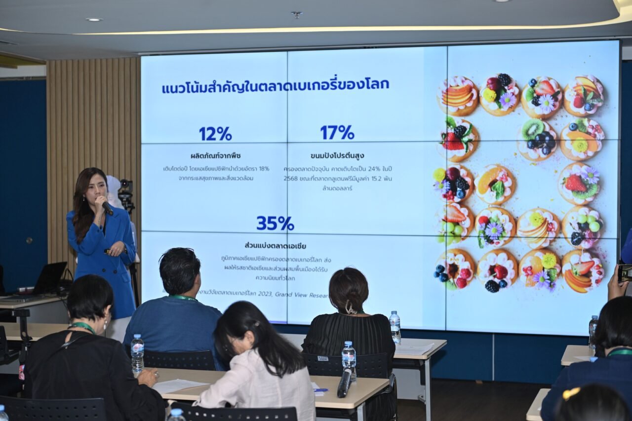 น.ส.สุรีรัตน์ ลีลาศิริวณิชย์ ผู้จัดการฝ่ายการตลาด ยูนิลีเวอร์ ฟู้ด โซลูชั่นส์ ประเทศไทยและกัมพูชา เปิดเผยว่า จากรายงานวิจัย Grand View Research ปี 2023 ระบุว่าตลาดเบเกอรี่โลกจะมีมูลค่า 208.93 พันล้านดอลลาร์ในปี 2573 มีอัตราเติบโตราว 6% ต่อปีโดยภูมิภาคเอเชียแปซิฟิกครองส่วนแบ่งการตลาดสูงสุด 35% ตามด้วยยุโรปและอเมริกาเหนือ ซึ่งปัจจัยขับเคลื่อนหลักเกิดจากความต้องการสินค้าพรีเมียม การขยายตัวของเชนร้านระดับโลก และพฤติกรรมบริโภคอาหารว่างสะดวกซื้อ โดยผลิตภัณฑ์ยอดนิยม คือ ขนมปังครองส่วนแบ่งการตลาด 32% ตามด้วยเค้กและพาสตรี้ 29% ขณะเดียวกันมีการคาดการณ์แนวโน้มสำคัญในตลาดเบเกอรี่โลก พบว่า ตลาดเอเชียเป็นผู้นำตลาดเบเกอรี่โลก 35% ส่งผลให้ภูมิภาคเอเชียแปซิฟิกครองตลาดเบเกอรี่โลก และรสชาติเอเชียรวมทั้งส่วนผสมพื้นเมืองได้รับความนิยมทั่วโลกและขนมปังโปรตีนสูงครองส่วนแบ่งตลาดในสัดส่วน 17% คาดการณ์เติบโตเป็น 24% ในปี 2568 ขณะที่ตลาดกลูเตนฟรีมีมูลค่า 15.2 พันล้านดอลลาร์ และผลิตภัณฑ์จากพืชมีแนวโน้มเติบโต 12% ต่อปี ซึ่งปัจจัยหลักเกิดจากกระแสสุขภาพและสิ่งแวดล้อม 18%