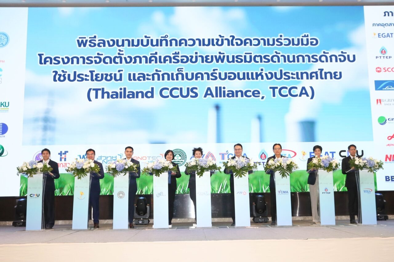 นายชูกิจ ลิมปิจำนงค์ ผู้อำนวยการสำนักงานพัฒนาวิทยาศาสตร์และเทคโนโลยีแห่งชาติ (สวทช.) เปิดเผยว่า ได้ร่วมลงนามบันทึกความเข้าใจความร่วมมือกับพันธมิตร จัดตั้งภาคีเครือข่ายพันธมิตรด้านการดักจับ ใช้ประโยชน์ และกักเก็บคาร์บอนแห่งประเทศไทย (Thailand CCUS Alliance,TCCA) เพื่อขับเคลื่อนเทคโนโลยีและอุตสาหกรรมการดักจับ ใช้ประโยชน์ และกักเก็บคาร์บอน (CCUS) ในประเทศ เพิ่มความสามารถในการแข่งขันด้านเทคโนโลยี CCUS ของไทยในเวทีโลก สู่เป้าหมายความเป็นกลางทางคาร์บอนอย่างยั่งยืน