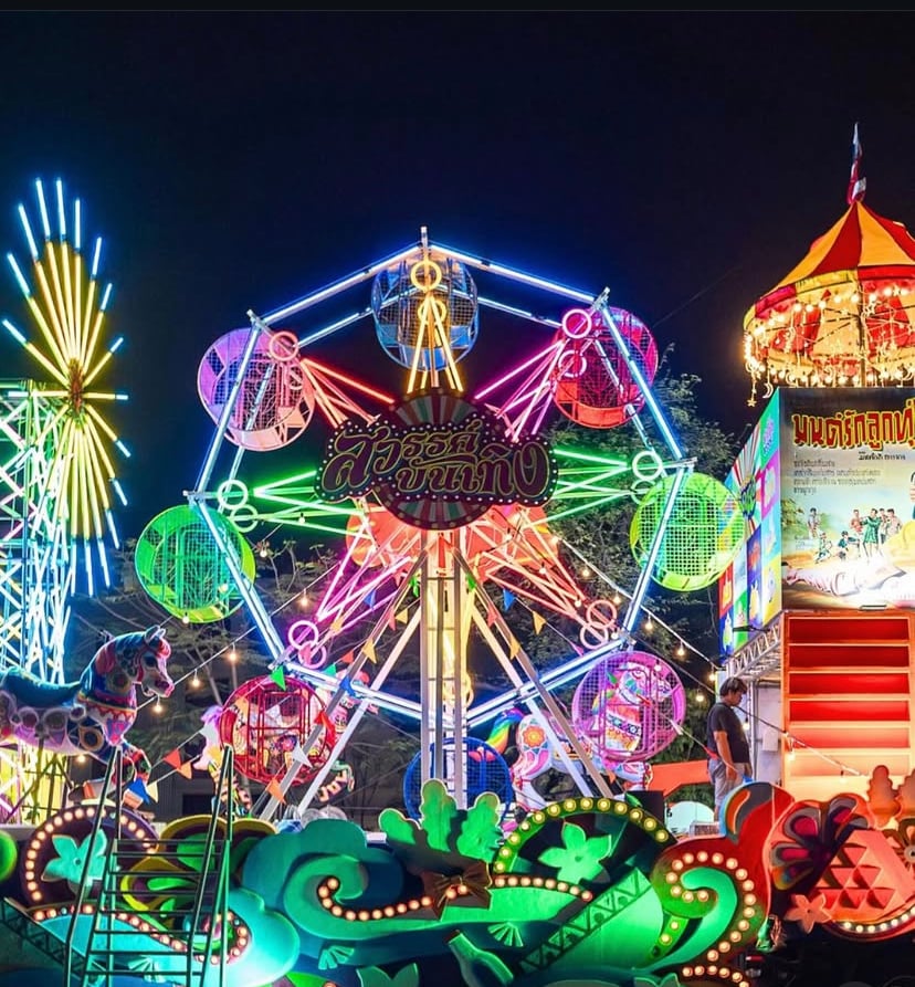 ขบวนมหรสพวิถีลีลาสยาม : “งานวัด”เป็นสัญลักษณ์ของความรื่นเริงการละเล่นและความบันเทิง แบบไทยๆงานวัดเป็นพื้นท่ีที่รวมศิลปะการแสดงและการละเล่นพื้นบ้านหลากหลายรูปแบบ แสดงให้เห็นถึงภูมิปัญญาและความคิดสร้างสรรค์ของคนไทยและมหรสพนี้เปรียบเหมือน เป็นการอนุรักษ์และเผยแพร่วัฒนธรรมไทยในรูปแบบที่ร่วมสมัย เป็นขบวนรถเทรลเลอร์ขนาด 1 ตอนความยาว 13.5 เมตร ตกแต่งเป็นชิงช้า สวรรค์ ม้าโยก ไฟนีออนหมุนได้แบบงานวัด โปสเตอร์หนังกลางแปลง โดยมีองค์ประกอบ ขบวนเป็นขบวนแตรรําวงขบวนนักแสดงแต่งกายย้อนยคุเต้นร่วมกับคณะแตร วง รวมมีนักแสดงประกอบขบวนทั้งหมด 65 คน