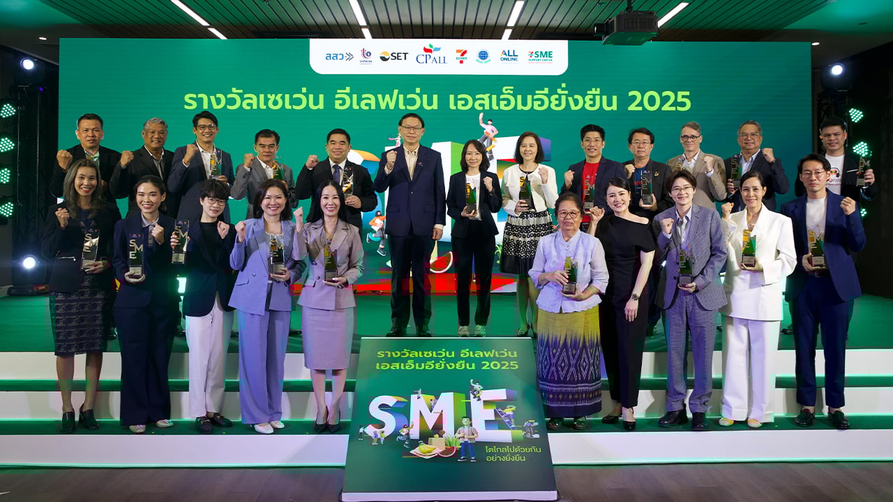 “เซเว่น อีเลฟเว่น” ผนึก 3 พันธมิตรระดับประเทศ “กสอ.-สสว.-ตลาดหลักทรัพย์ฯ” จัดงานมอบรางวัล “เซเว่น อีเลฟเว่น เอสเอ็มอียั่งยืน 2025” อย่างยิ่งใหญ่ต่อเนื่องเป็นปีที่ 8 ตอกย้ำความสำเร็จเหล่าผู้ประกอบการ SME ไทย 18 ราย จาก 10 ประเภทรางวัล ที่มุ่งยกระดับสินค้าในหลากหลายมิติทั้งเศรษฐกิจ สังคม และสิ่งแวดล้อมอย่างยั่งยืน เผยกลุ่ม SME อาหารไทยมาแรง น้ำพริกป้าแว่น-น้ำพริกมินิรุ่งเจริญ-น้ำพริกเอมโอชา กอดคอคว้า “รางวัลยั่งยืน-รางวัลดาวรุ่ง” พร้อมดึง “ซีเค เจิง” จัด Special Talk ติดอาวุธความรู้ SME ไทย ปั้นสินค้าสู่ตลาดโลก