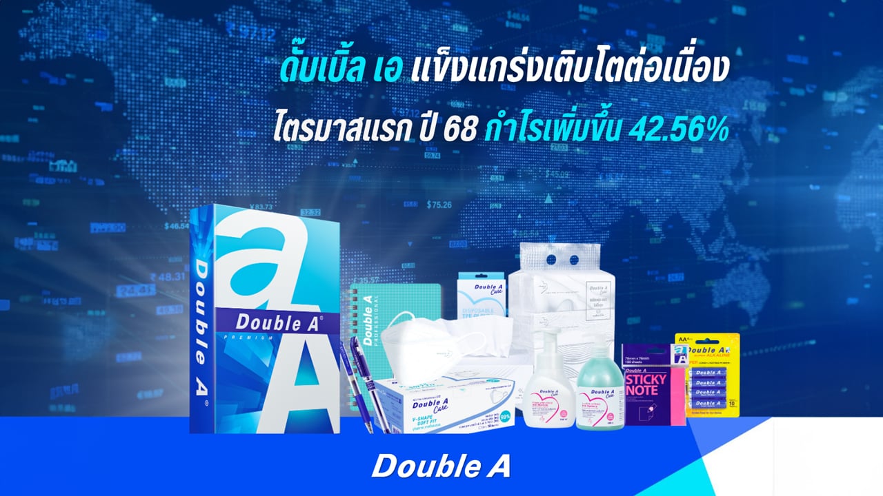 บริษัท ดั๊บเบิ้ล เอ (1991) จำกัด (มหาชน) รายงานผลประกอบการไตรมาสแรก ปี 2568 โดยมีรายได้รวม 5,566 ล้านบาท และมีกำไรสุทธิ 431 ล้านบาท เพิ่มขึ้น 42.56% สะท้อนถึงกลยุทธ์การรุกตลาดที่เข้มแข็งและศักยภาพของแบรนด์ ดั๊บเบิ้ล เอ ที่สามารถรักษาคุณภาพสินค้าและส่วนแบ่งตลาดได้อย่างมั่นคงทั้งในประเทศและต่างประเทศกว่า 130 ประเทศทั่วโลก แม้ว่าการค้าระหว่างประเทศจะเผชิญแรงกดดันจากมาตรการภาษีของสหรัฐฯ แต่เนื่องจากสัดส่วนการส่งออกไปยังสหรัฐฯ คิดเป็นเพียง 3-4% ของรายได้ทั้งหมด จึงไม่มีผลกระทบอย่างมีนัยสำคัญต่อการดำเนินธุรกิจโดยรวมของบริษัทฯ ประกอบกับบริษัทฯ มีการบริหารจัดการต้นทุนและกระบวนการจัดซื้อจัดจ้างอย่างมีประสิทธิภาพ เน้นการใช้ทรัพยากรให้เกิดประโยชน์สูงสุด ซึ่งช่วยควบคุมคุณภาพกระดาษได้ดีเท่าเดิม ลดต้นทุนการผลิต และลดผลกระทบต่อสิ่งแวดล้อมในทุกกระบวนการ ทั้งนี้ บริษัทฯ ได้ติดตามสถานการณ์และความชัดเจนในการเจรจาด้านการค้าระหว่างสหรัฐฯ กับประเทศต่างๆ อย่างใกล้ชิด เพื่อเตรียมพร้อมรับมือกับสถานการณ์ในระยะต่อไป