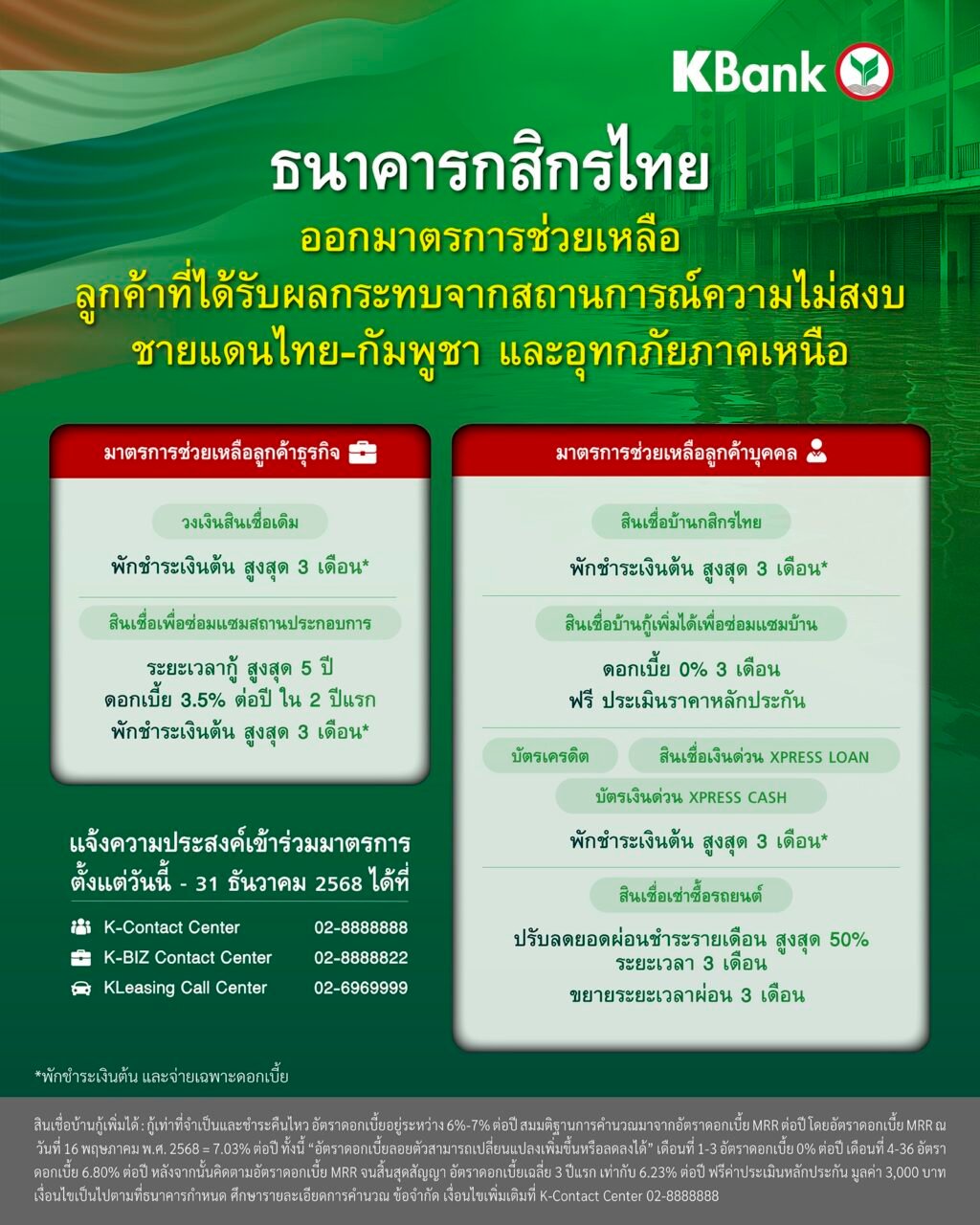 รวมมาตรการความช่วยเหลือจากธนาคาร ปะทะชายแดนไทย-กัมพูชา และน้ำท่วมภาคเหนือ ลดค่างวด ลดดอกเบี้ย เปิดกู้ซ่อมแซมบ้าน