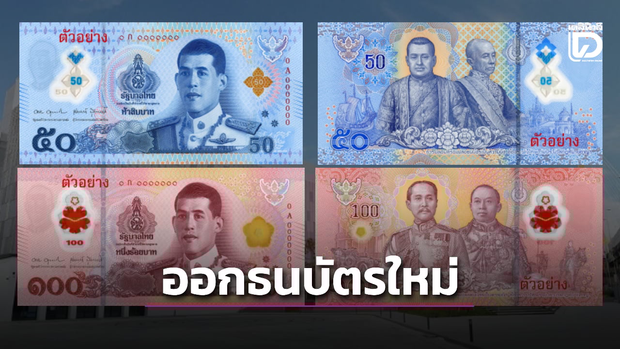 'แบงก์ชาติ' ออกธนบัตรใหม่พอลิเมอร์ ชนิดราคา 50 บาท และ 100 บาท ทนทานต่อการใช้งาน อายุการใช้งานนานขึ้น จะเริ่มออกใช้ตั้งแต่วันที่ 21 พฤศจิกายน 2568