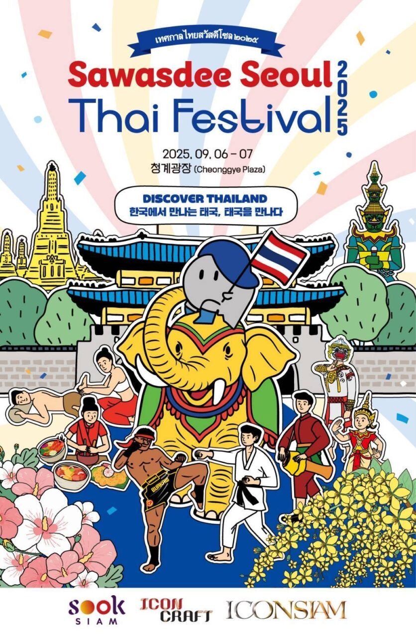 งาน “Sawasdee Seoul Thai Festival 2025” จัดขึ้นเป็นครั้งที่ 10 ใจกลางกรุงโซล ประเทศเกาหลีใต้ ระหว่างวันที่ 6–7 กันยายน 2568 ภายใต้ความร่วมมือของกระทรวงการต่างประเทศ โดยสถานเอกอัคราชทูตไทย ณ กรุงโซล และหน่วยงานภาครัฐ รวมถึงภาคเอกชน ทั้งจากประเทศไทยและเกาหลีใต้ ซึ่งถือเป็นเวทีสำคัญในการผลักดัน Soft Power ไทยสู่สายตาชาวเกาหลีและนักท่องเที่ยวจากทั่วโลก ผ่านมิติด้านศิลปะ ดนตรี อาหาร และการท่องเที่ยวไทย โดยครั้งนี้จะจัดขึ้นภายใต้ธีม “Discover Thailand” นำเสนอสีสันและเสน่ห์อันหลากหลายของวัฒนธรรมไทยในรูปแบบใหม่ที่ยังคงไว้ซึ่งอัตลักษ์แบบไทยแท้ ผสมผสานกับประเด็นความยั่งยืนที่ทั่วโลกให้ความสำคัญ ซึ่งสอดคล้องกับความมุ่งมั่นของไอคอนสยามในการผลักดันและส่งเสริมผู้ประกอบการงานคราฟต์และภูมิปัญญาไทยให้มีโอกาสในการพัฒนาธุรกิจอย่างยั่งยืนและเฉิดฉายสู่เวทีโลก